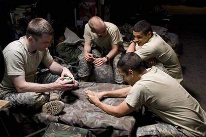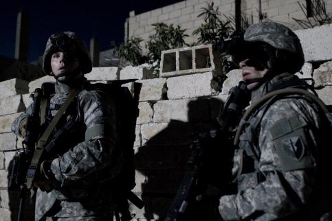 Not only was the event noteworthy for its brutality, but DePalma’s method of execution for this film should be applauded. I mean, this film is about as multimedia as a film by a major Hollywood player is about to get. 90% of the film is staged, but the method of the staging is not quite what you’d expect. The action is seen mainly from the point of view of Angel Salazar (Izzy Diaz), who got in the army to help pave the way for a film school admission. Thus, he spends most of his time with the camera, recording his team of Reno Flake (Patrick Carroll), Lawyer McCoy (Rob Devaney), and B.B. Rush (Daniel Stewart Sherman) as they go about their duties in the army. The first, and most prominent, is the handheld handicam method. You’ll have seen it used to much vomit-inducing effectiveness in Cloverfield. If anything, at times you might not be able to see anything, since some major parts of the film were shot at night. However, it is effective in placing you at the scene, so that you’re right at the guard station with the rest of them. Salazar would also secretly film the main talking point of the film, which doesn’t make for the most comfortable of viewings, to say the least.