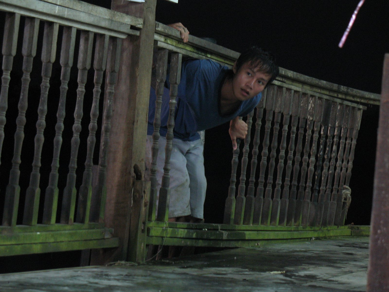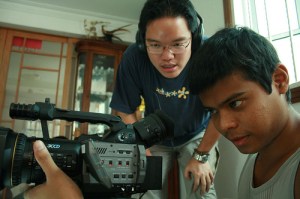Two telemovies. ‘Kurus’ and ‘Cinta Tiga Segi’. And one short film, ‘Blue Roof’ (which sprang out from the latter). He was also around during the first day of my ‘Chicken Rice Mystery’ shoot. Despite my ‘producer’ tag, I am heavily involved in the creative side of things, so much that I often end up neglecting the more practical side of the production (to Ming Jin’s horror). The process had always been like this. First we brainstorm and develop a story together, Ming Jin types out a script, we seek cast members, then we’ll have rehearsal sessions (sometimes if necessary, and Ming Jin has to prepare for other aspects of the production, I’ll have to conduct additional sessions by myself).