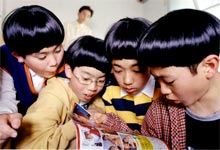 So you can imagine the commotion when a new kid transferred to the school. He’s cool, he’s from Tokyo, his name is Yosuke (Hoshi Ishida). More importantly, he has a different hair. Centre-parted hair. Orange hair. With blonde highlights. All hell practically breaks loose. The girls adore him. His teachers doesn’t like him, but that’s because he refused to cut his hair, which made him a rebel…which made the girls adore him even more. Which made him the boys’ public enemy number 1…almost. Since their teacher forced them to spend time with him and show him around, they did indeed spend more time with him. Over time, their alliance grew to the point that the boys banded together to resist Yosuke getting his hair cut by Yoshiko.