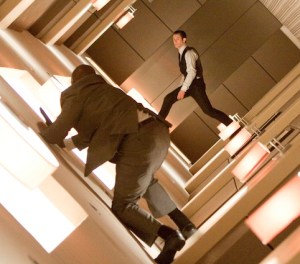 …his dead wife, Mal (jeng jeng jeng). Actually, she is more of a manifestation of his own guilt and fears, so in that sense, his greatest enemy is himself. But given that large parts of the film is clearly played out within someone’s subconscious at any given time (bear this in mind), she doesn’t really exist, but is a formidable enemy all the same. It’s a very dangerous game they’re playing, but there are rules in place, such as they can die in a dream, but it will result only in their awakening. These rules are clearly stated out in the dialogue, but there’s quite a fair number of them that you do have to make the extra effort to keep up. It is these rules that I have been (subconsciously) mulling over in my mind, wondering about the real truth that could or should be extracted from ‘Inception’. Then again, a lot of his films have always defied simplistic and singular conclusions (and if they didn’t, they took a pretty roundabout way to get there), arguably making Christopher Nolan one of the few consistently post-modernist contemporary filmmaker around.