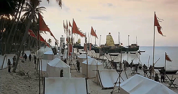 So some people missed out on the film, based on a matter of principle. What did they miss out on? I’ve mentioned about the incongruity between certain aspects of the film, but what of the story? Indulge me as I refer to the opening line of this review: “‘Hikayat Merong Mahawangsa’ is a film that promised much to its expectant viewers.” Not unlike the initial notes of dissatisfaction expressed above, I find that promise to be one that is not as fulfilled as I had expected. It played very much to type, with a rogue character in the lead. Merong Mahawangsa was a character with much hype, but I did not find him to be as strong or as true as he was promised. A part of that lies in the inconsistency (that word again!) of his characterization. One minute, he is somewhat suspicious of the Romans, but within the next he is opening up to the Romans about his early childhood. Initially, he was nothing more than a mysterious stranger rescued and rehabilitated by the village headman; by the end of the next montage, aided, it has to be said, by a very liberal use of voiceover narration, we see him winning over the said village, becoming its king in the process: “And as such, every king needs a queen.” Cut to a shot of the girl looking on, and you get that they’re already in love. That is it. Empires are great because the voiceover said so, when the visual evidence of a few tents and huts along a beach suggested otherwise. People are great because you are told that they are great. There is little room for the characters to grow, to actually be real, ironically enough. I am not sure whether this was a deliberate strategy, but I do wish I had been shown more of the budding seeds of love, or potential plot points, rather than being thrown into the pool at the deep, sink all the way to the bottom, and then rise for air all within five continuous seconds.