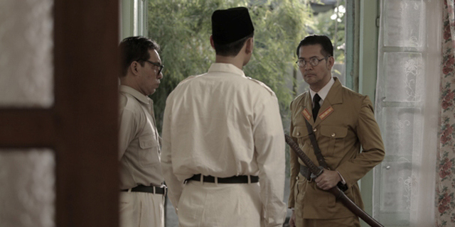 Then the Japanese comes barrelling into the country, and the Oranje was forced to flee. Soekarno is a free man, so to speak, but only as free as the Japanese allows him to be, for they did not get all the way there by being idiots. Realising that he could be a strong asset to their efforts to turn the minds and hearts of the locals, Soekarno is tapped by the Japanese authorities, dangling the carrot of eventual freedom and independence in front of him. It is around this time that he becomes involved with other important figures such as Hatta (Lukman Sardi) and Sjahrir (Tanta Ginting), the former with whom the international airport in Cengkareng he is named after.