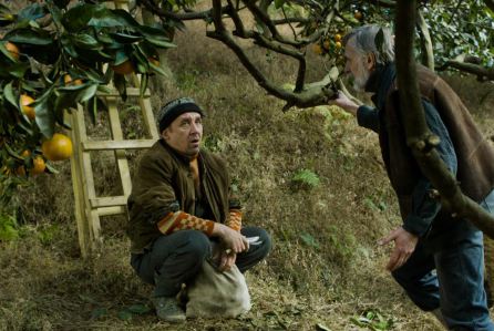 There is a scene in ‘Tangerines’ where the director, Zaza Urushadze, appeared to go all meta on us. Three men, trying to hide the fact that a shootout took place on their property, pushed a van of the perpetrators (empty of people, of course), into a nearby gorge. The van fell awkwardly to the bottom, and then stopped moving. A simple three-shot of all three from behind, and then one of them noted, “I thought it would explode.” “No,” his friend said, “that only happens in the movies. “Cinema is a big lie.”