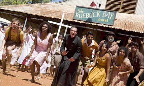 Taking a slightly different tack, ‘Bran Nue Dae’ challenges these forms of identification. The white Australians who ran the boarding school in Clontarf, for example, were willing to educate Aboriginal teenagers to become a priest. They hoped that those teenagers would be able to help their own people in the future, just like what Father Benedictus (Geoffrey Rush) said: “My greatest desire is to see you Aborigine people educated and trained in the skills of the modern world.” Of course, the religious ideals behind such comments shouldn’t be ignored, but the fact remains that there is a difference that is to be noted here from ‘The Sapphires’.