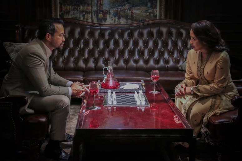 In the repeated scenes of Suri playing chess with Hassan (Tony Eusoff), the president of the fallen party, we see the dexterity of Suri at moving the pieces to finally checkmate him. In the same manner, she eliminates all those who need to be cast aside, pitting one side against the other until they all fall like chess pieces. It is she, in reality, in whom resides the actual ‘daulat’, having the power to win and survive in politics.