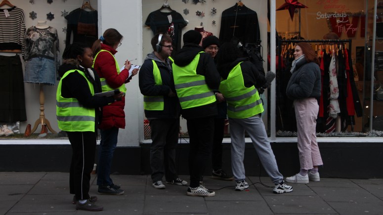 Filming on the busy Christmas streets of Nottingham in bright yellow fluorescent jackets! It was definitely a moment when I realised that I wasn’t in the classroom anymore, and that we were part of a professional film production, having to deal with members of the public while trying to remember all of the things we had been taught. We were also working with professional actors. It was definitely the defining moment for me.