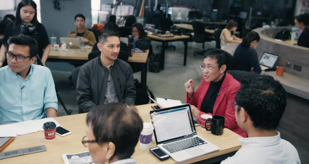 ‘A Thousand Cuts’ unsheaths with Maria Ressa, a founder of Philippines-based online news website Rappler, as she directs their operations covering the State of the Nation address in 2018. Delivered by Rodrigo Duterte, one thing stood out for me as we see the live reactions to the president’s harsh words condemning the press in their coverage of him.